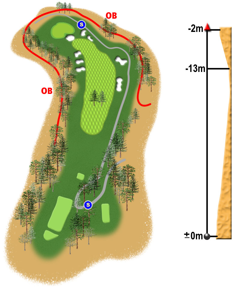 グリーン右サイドにはマウンドがあり、 左には大きなガードバンカーがあるので注意したい。
